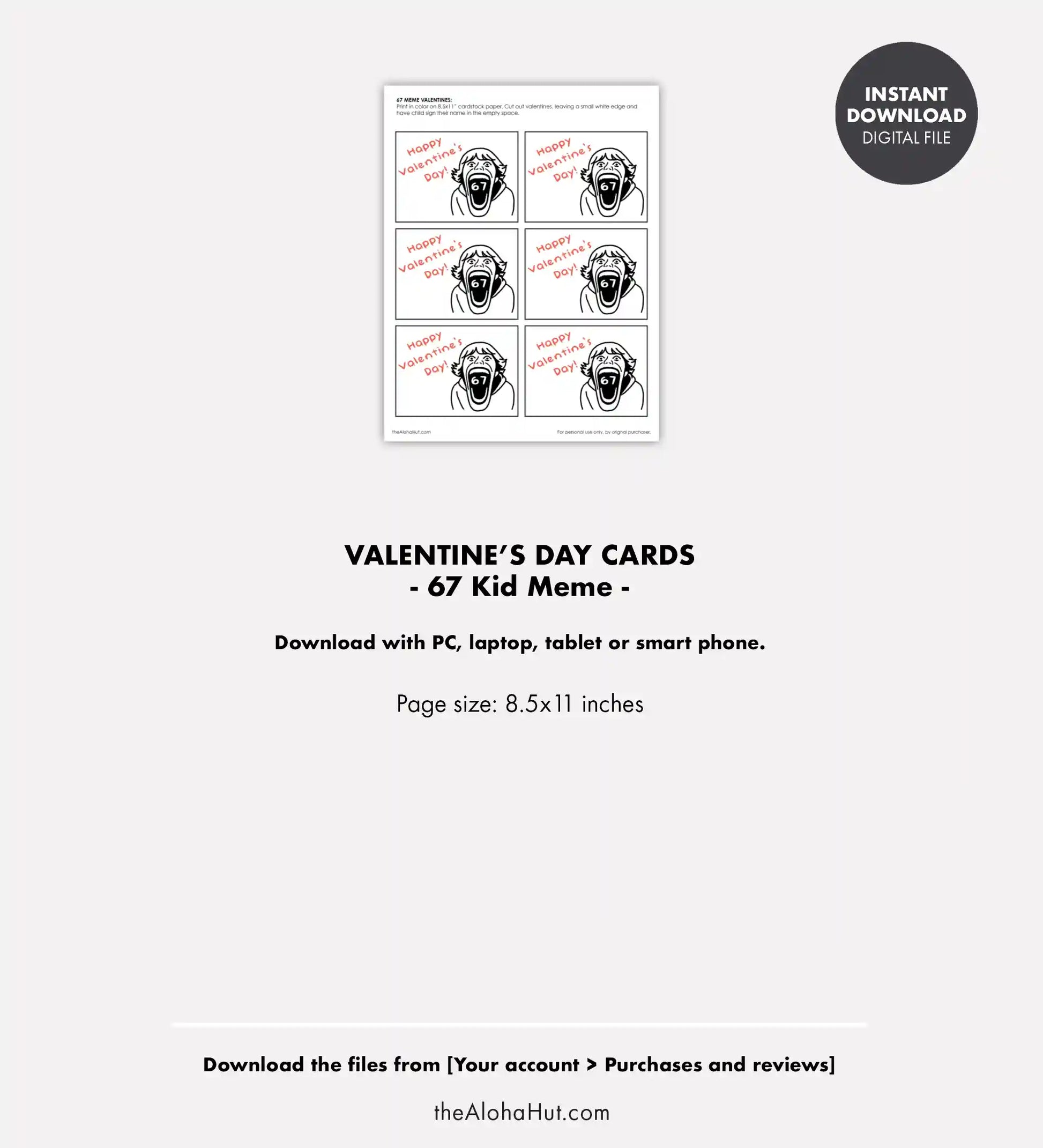 Funny 6 7 Kid Meme Printable Valentine - Digital Download.