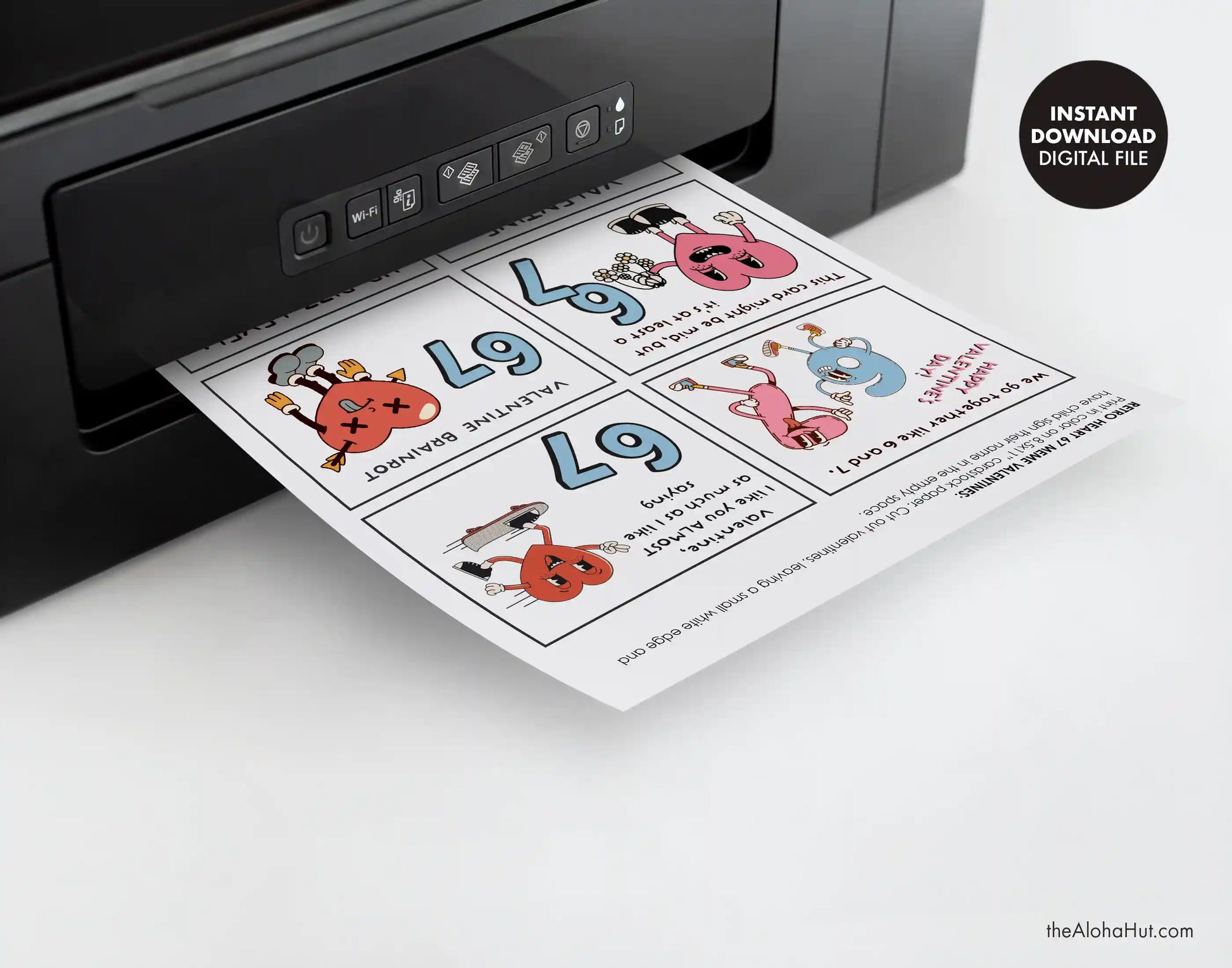 Funny 6 7 Meme Retro Heart Character Printable Valentine - Digital Download.