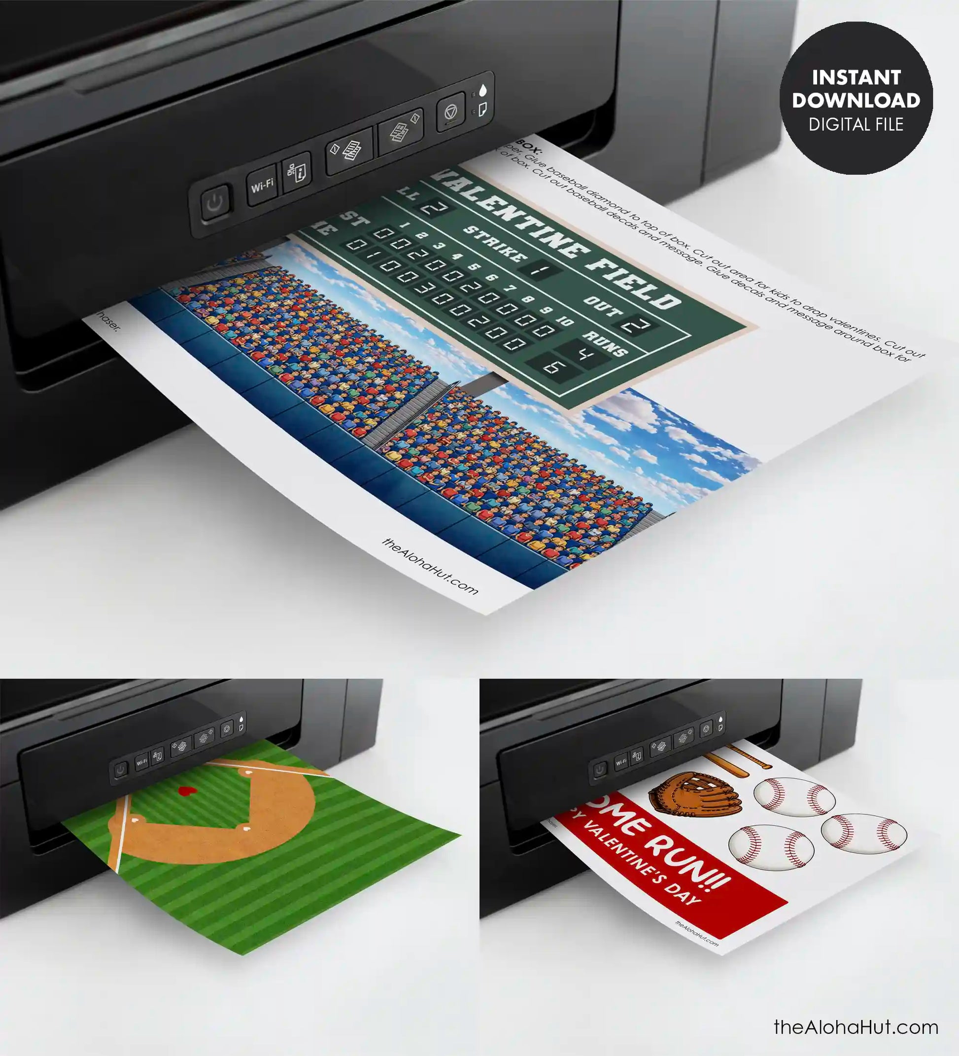 The Baseball Field Valentine box print includes two size options so you can fit it closest to your box.
