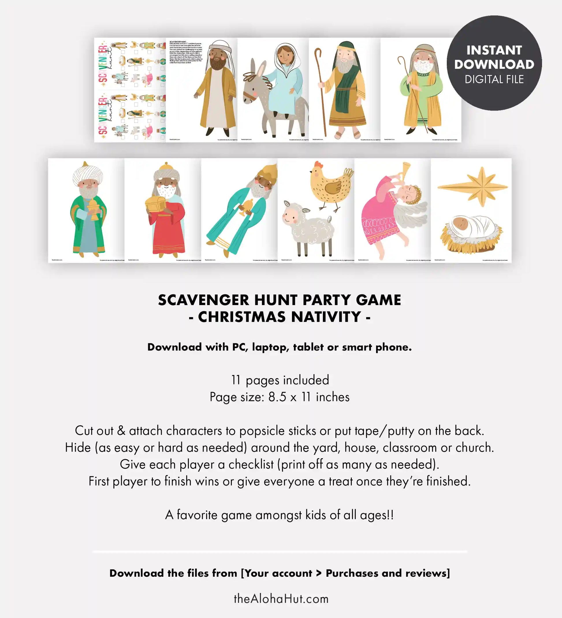 Nativity Christmas Party Scavenger Hunt Game - Digital Download.