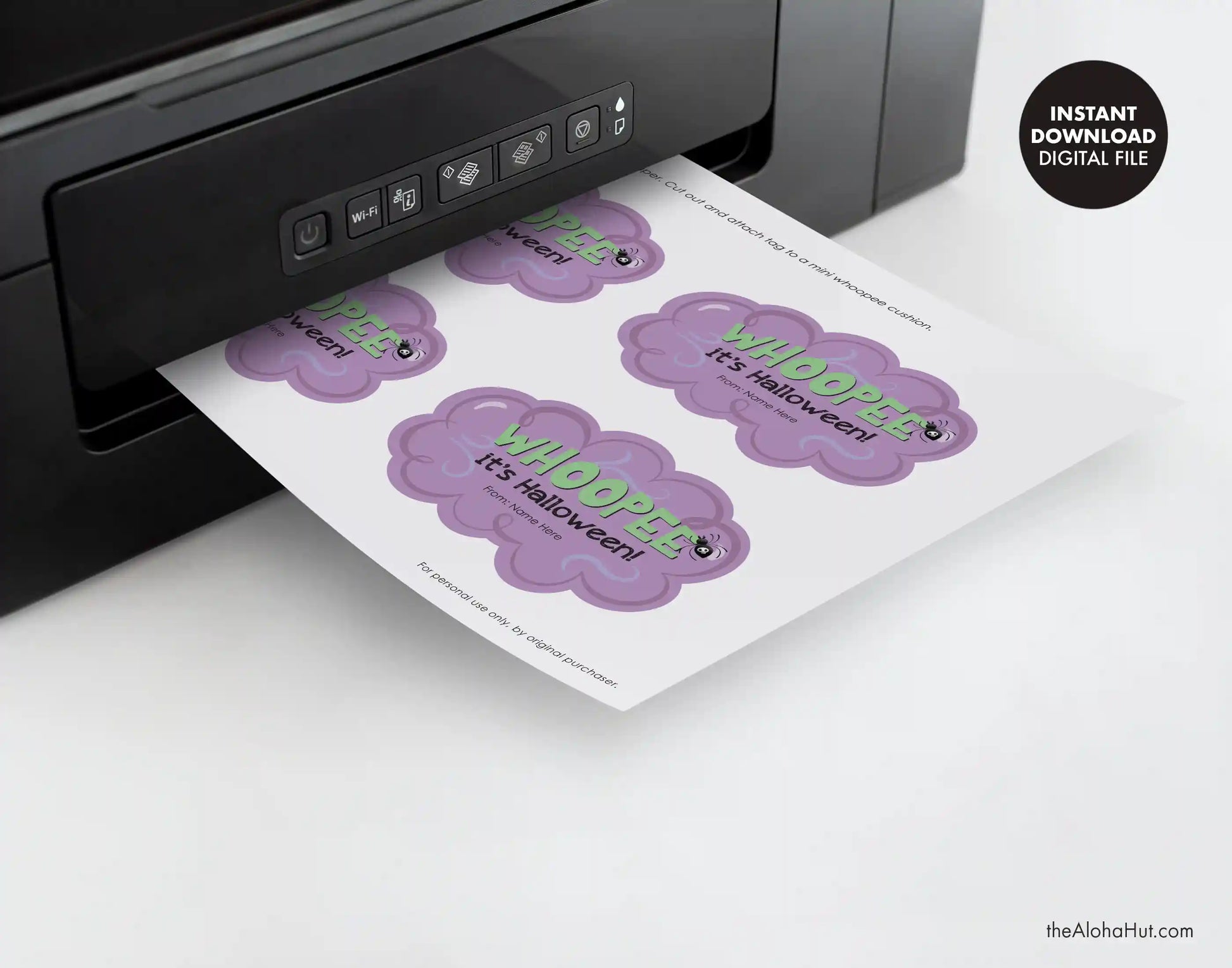 - Four high resolution, ready-to-print pdf files of the Halloween Whoopee Cushion Gift Tags. File is sized 8.5x11".