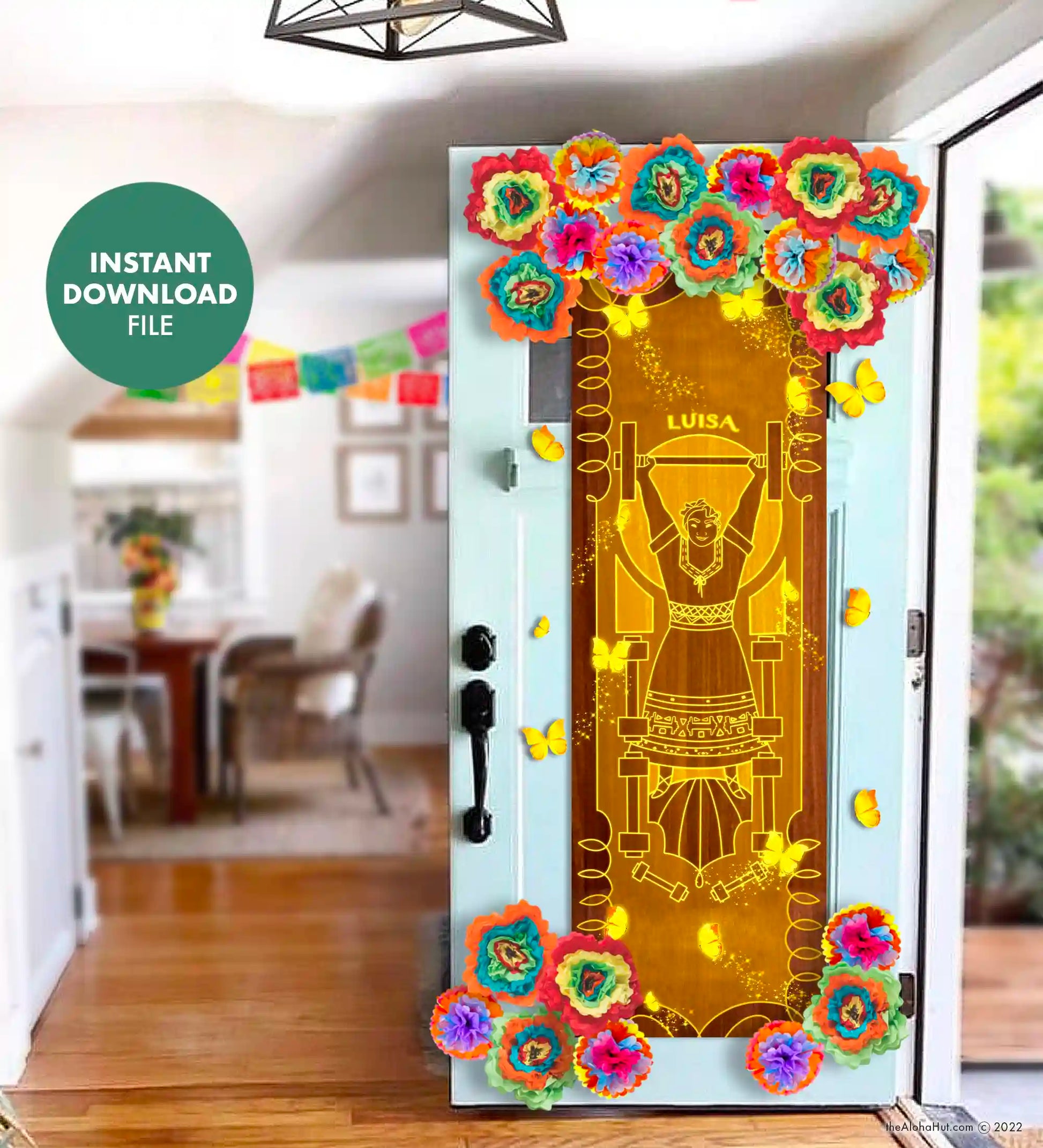 Celebrate with a magical Encanto door for Luisa at your next Encanto birthday party or Encanto themed event! Our Encanto door posters are the perfect party addition and decoration. Use them for an Encanto photo booth backdrop, to decorate your child's door, to welcome guests to the party, as a backdrop for the food table, or as a fun teacher door for your classroom or teacher appreciation.