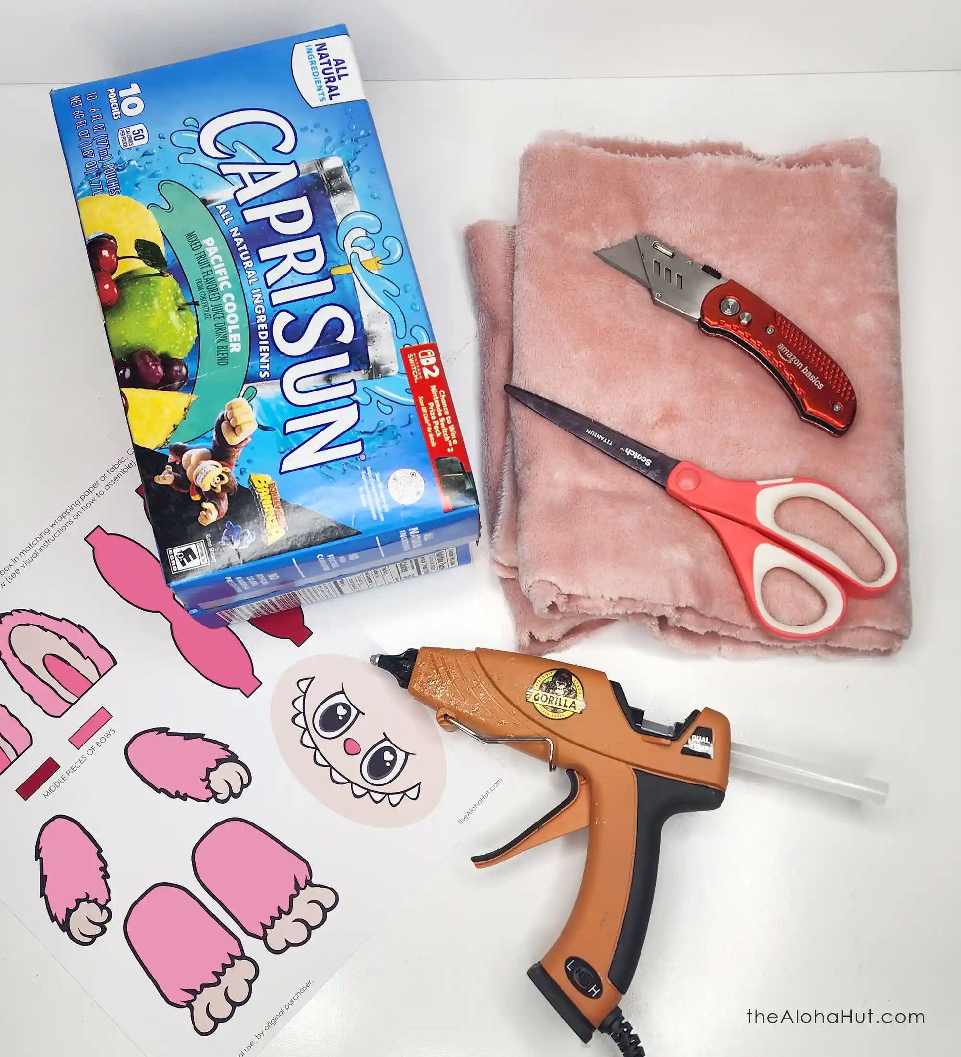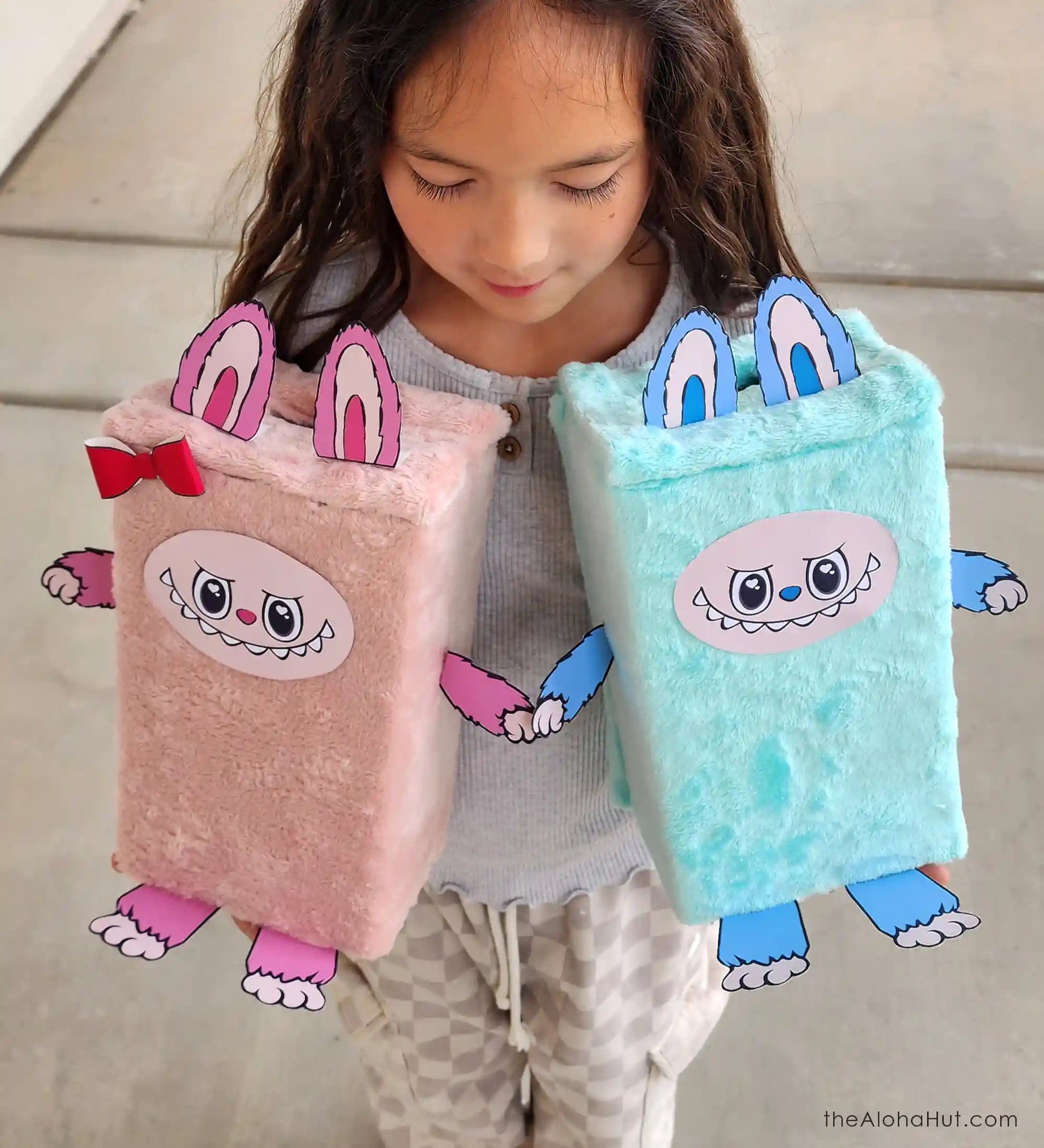 Even if you’re doing it last minute, you can still make your own cute little Labubu monster this Valentine’s day! All you need is a few supplies (a little fabric from your local fabric store) and this printable monster pdf. Just print, cut out, and glue to your box!
