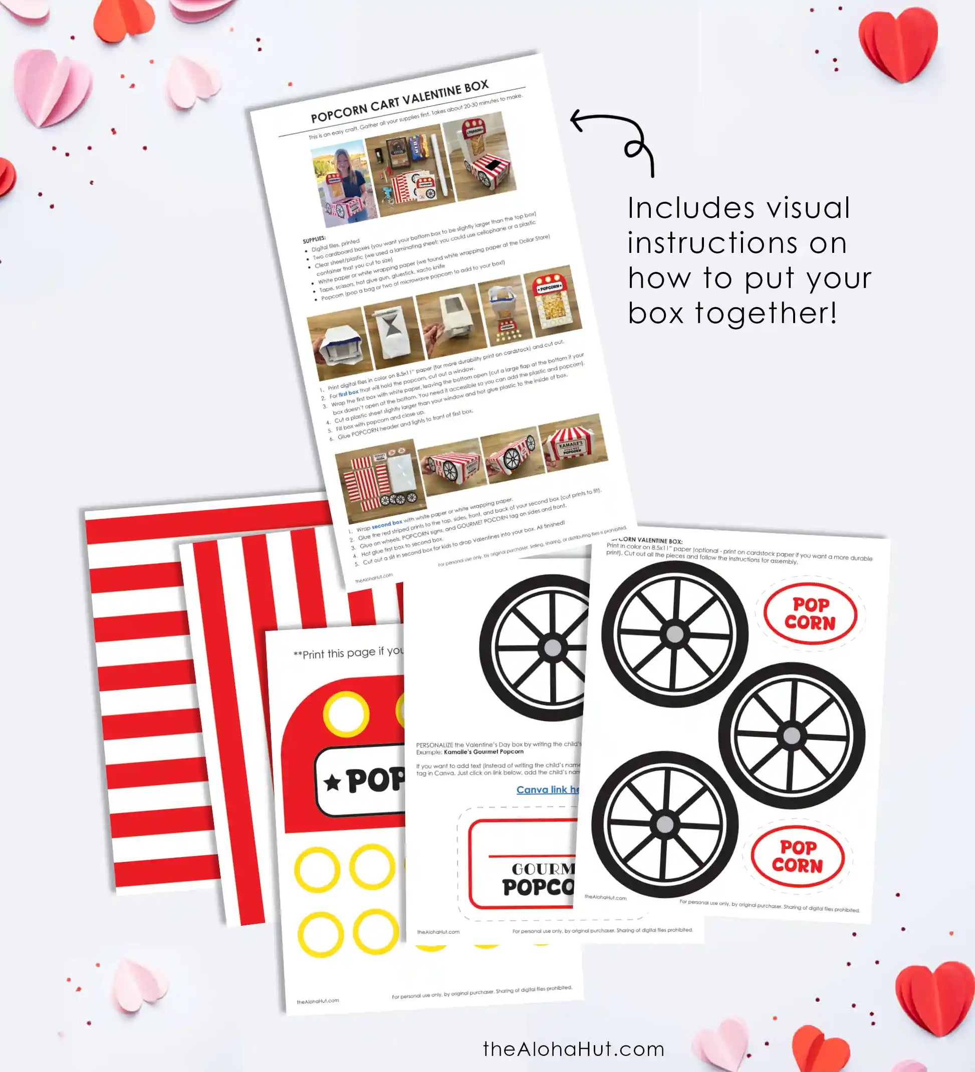 - Includes visual instructions on how to easily put your Valentine box together.