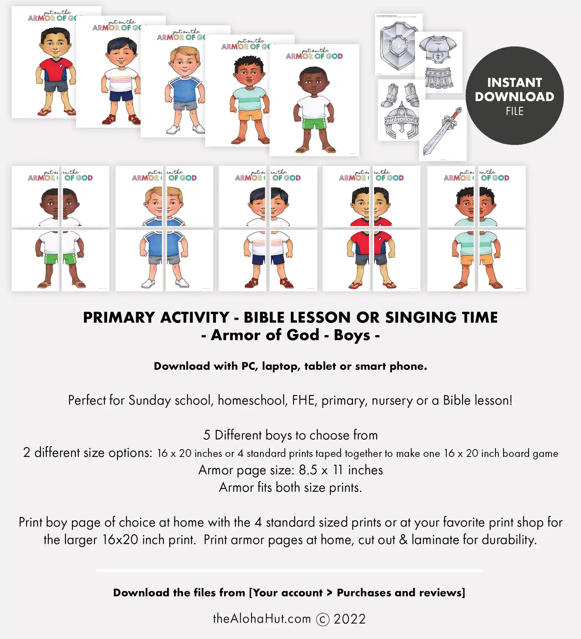 - Two high resolution, ready to print pdf file of the Armor of God singing time activity. Files are sized 8.5x11", the boys are cut into 4 pieces so you can tape them together to make one large poster.